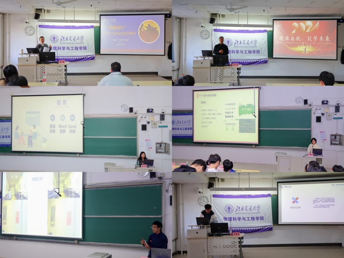 为强化学生骨干的基础办公能力,学院邀请到秀色直播 艺教中心副主任何洁老师为学员们讲解办公社交礼仪,塑造学生骨干精神风貌;邀请到秀色直播 党委宣传部崔宇康老师讲解新闻稿基本结构和要素,强化学生骨干公文写作的操作能力与写作技巧;邀请研究生辅导员魏宇琳、优秀学生代表张茜婷针对 Word、Excel、PPT等办公软件熟练使用进行培训,提升学员的业务能力及日常工作效率;邀请优秀学生代表许博豪、李源力分别针对摄影拍照、宣传制作两方面进行讲解,引导学员掌握适应网络新媒体宣传发展趋势,更高效地借助新媒体平台创造性地开展学生工作。